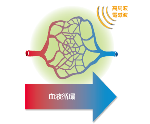マイクロ波発生装置(SHT)は2.45GHz、出力300-700Wで43℃まで体温を上げてガン細胞の周辺の血管を破壊して縮小させ、健常な細胞を活性化します。